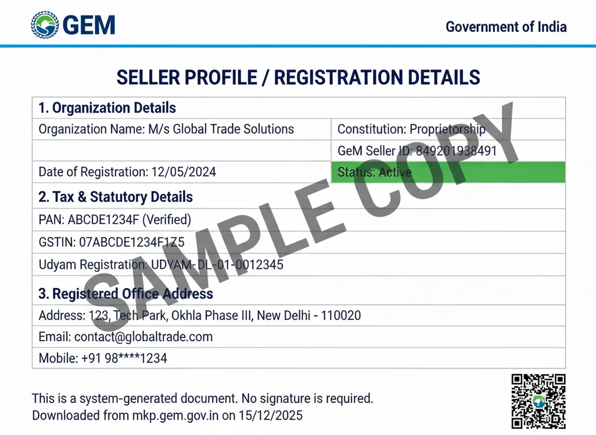 - Documentation and Authentication: GeM/partner (e.g., certifying agencies like QCI partners) requests business documents, financials, and product-specific technical specs.